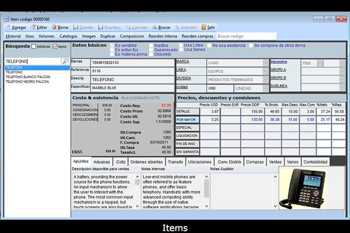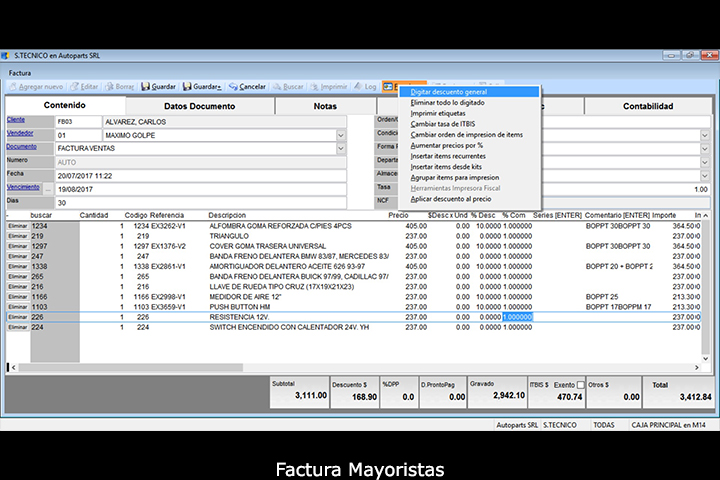 Control de inventario vía seriales, facturación multisucursal en línea y fuera de línea, servicios de reparación.
