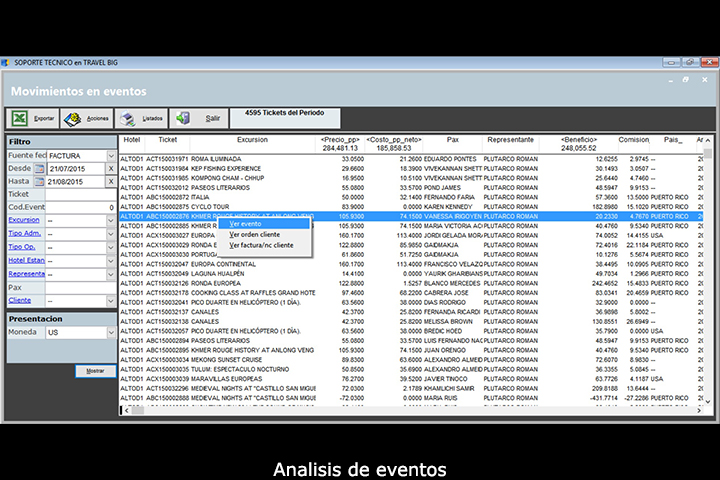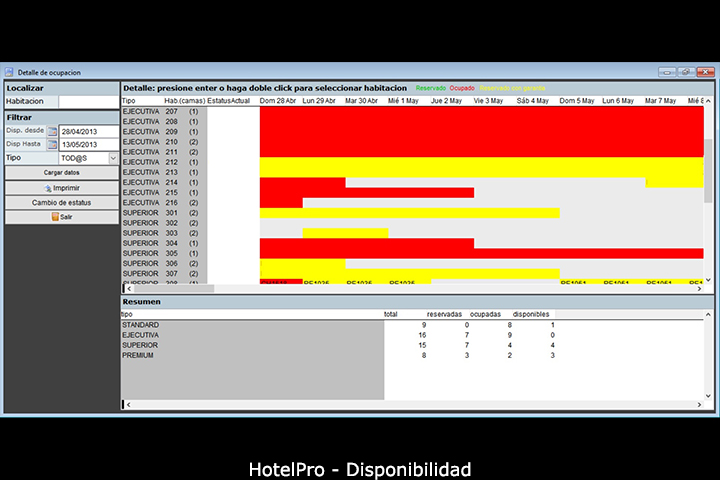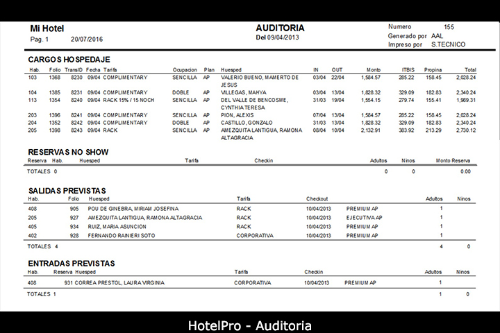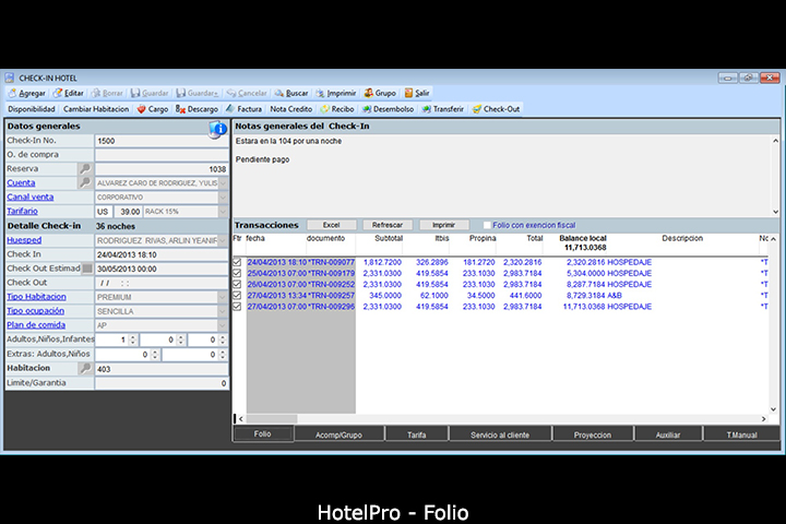 Reservas, folios, eventos, módulo de restaurant, self serving check-in, estadísticas y otros.